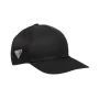Topi bisbol yang dihiasi logo segitiga enamel ikonis merek ini terbuat dari Re-Nylon: benang nilon regenerasi (ECONYL®) yang diproduksi dari sampah plastik daur ulang dan murni yang dikumpulkan di laut, jaring ikan, dan serat limbah tekstil.